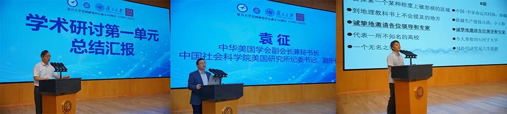闭幕式由复旦大学美国研究中心副主任宋国友教授主持。8位学者就分组讨论的主要观点向大会进行了汇报。中华美国学会副会长兼秘书长、中国社会科学院美国研究所副所长袁征进行了大会总结。